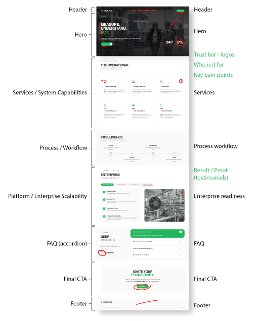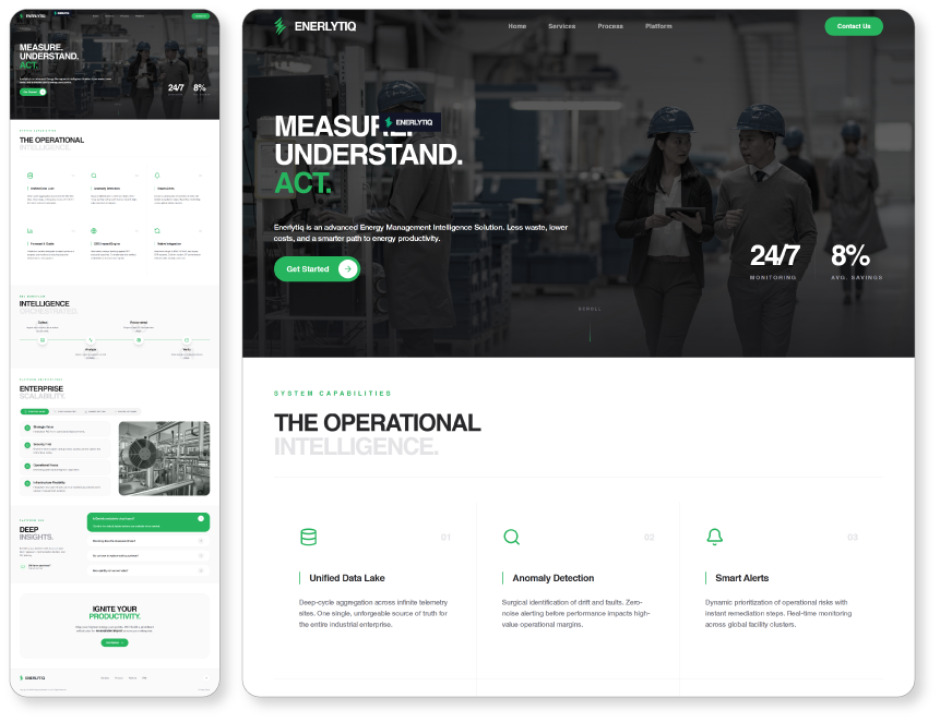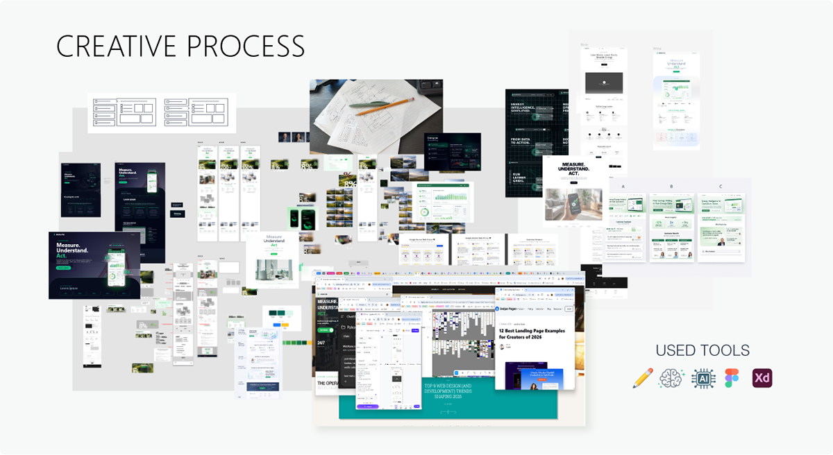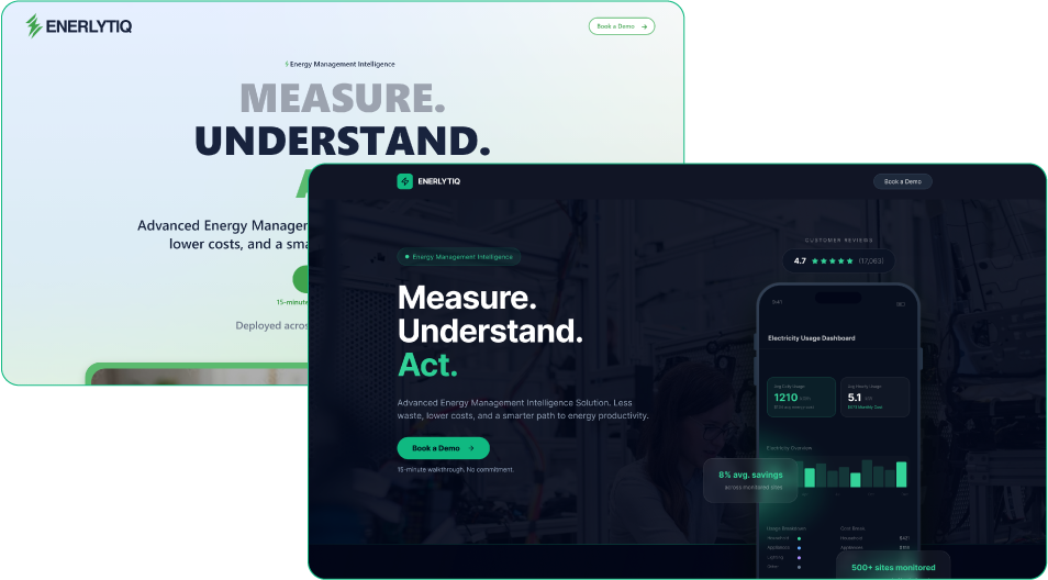 Landing page redesign exploring a more modern, data-driven experience for an AI-powered energy management platform.